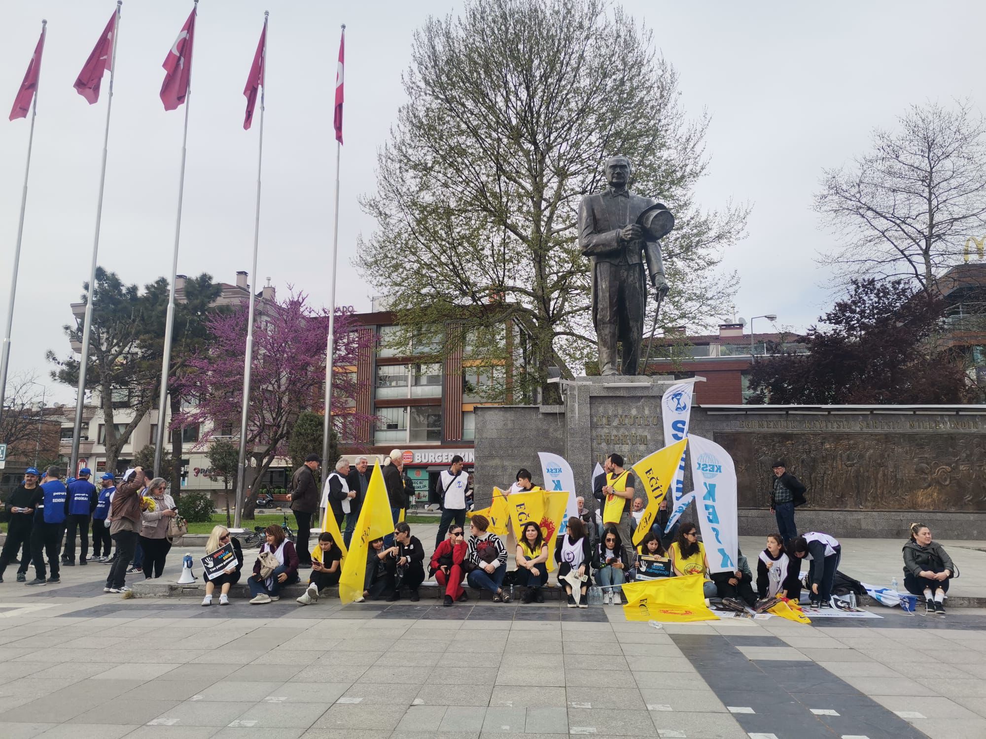 Düzce KESK ve SES, okullarda artan şiddete karşı 16-17 Nisan’da iş bıraktı. Anıtpark Meydanı’ndaki oturma eyleminde, güvenli eğitim ve yaşam hakkı talep edildi.